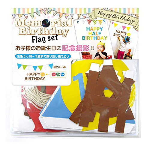 メモリアルバースデー ペーパーフラッグセット ブルーMIX