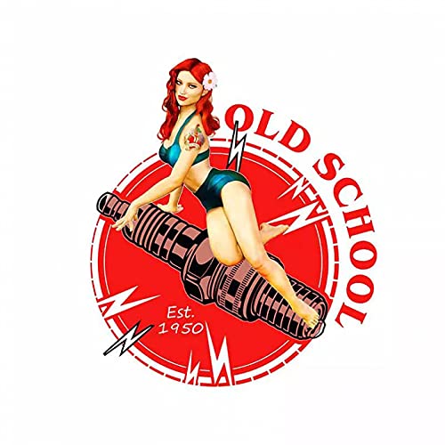 13 センチメートル × 11.3 センチメートルオールドスクールピンナップガールおかしい車のステッカー漫画デカ