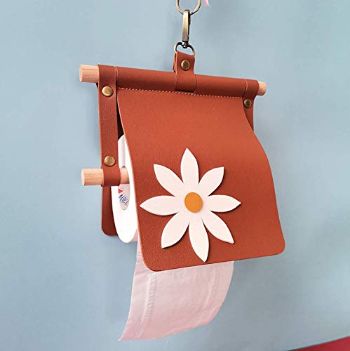 トイレットペーパーホルダー PUレザー 収納ラック 小さなデイジー 吊り下げ 壁掛け コンパクトタイプ 取り付