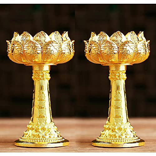キャンドルホルダー 蓮 燭台 キャンドルベース ラッキーアイテム インテリア照明 (大きい, ゴールド)