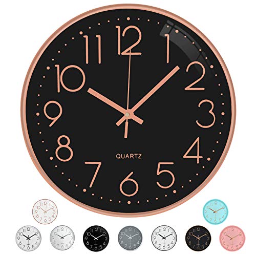 FOLIVORA クロック 掛け時計 直径30cm クオーツ時計 壁掛け 完全サイレント 静音 連続秒針 3D大数字 見やすい 9色