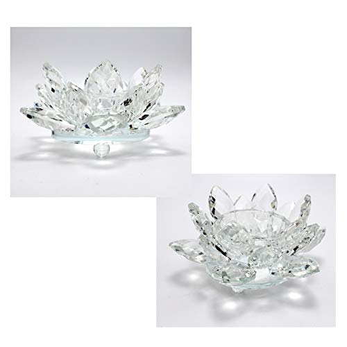 一心斎 燭台 2枚 蓮の花 蓮花 クリア ガラス K9 キャンドル・キャンドルスタン キャンドルホルダー - 輪灯 仏前