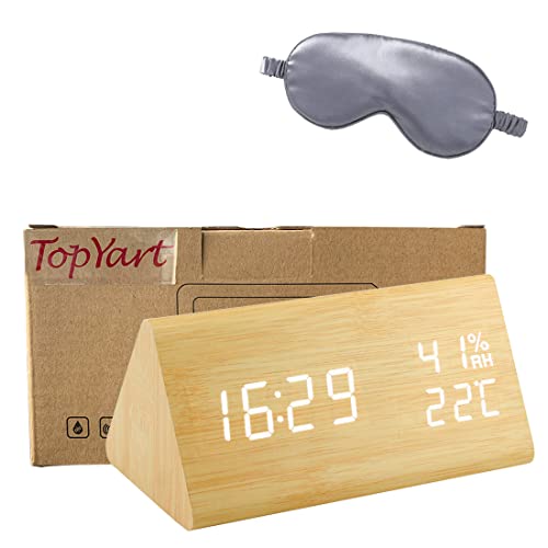 目覚まし時計 置き時計 デジタル 大きなLED数字表示 温度湿度計 カレンダー アラーム 振動/音感センサー 輝度
