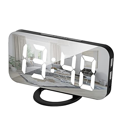 U-pick目覚まし時計 置き時計 ミラーデジタル時計 ミラークロック スヌーズ 12/24時間表示 卓上 LED大画面 設置