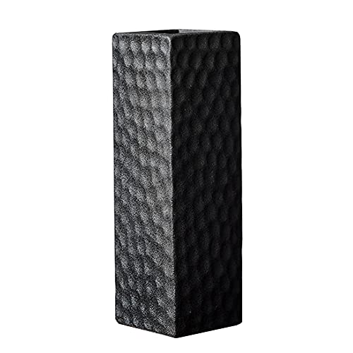 FUFUFU PRO 花瓶 黒 陶器 16cm つや消し フラワーベース 生け花 花器 (角型)