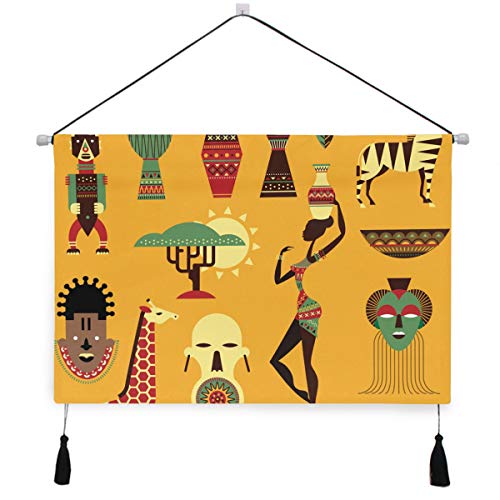 Akiraki タペストリー 壁掛け インテリア 北欧 おしゃれ アフリカ 民族風 レトロ 象 麒麟 イエロー 壁飾り 部屋