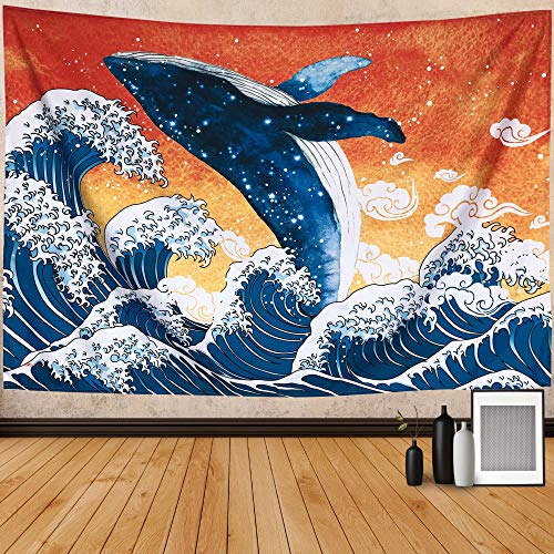 Negeekタペストリークジラ水彩和風壁ファッション多機能家の装飾ファッションアート布