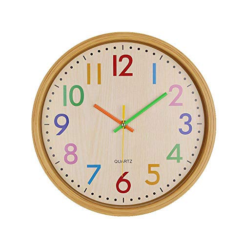 BECANOE 壁掛け時計 ウオールクロック サイレント カラフル アラビア数字 木目 シンプル 時計