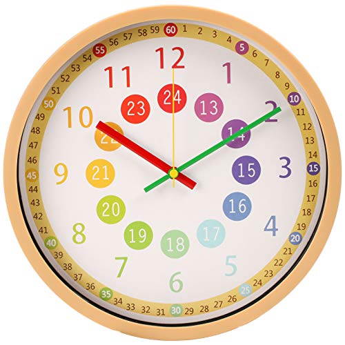 VIKMARI 知育時計 掛け時計 アナログ 静音 非電波 壁掛け時計 子供用 生徒用 時間学習 クロック 直径約30cm(