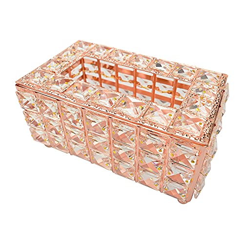 クリスタルティッシュケース ティッシュボックス 蓋付き キラキラ 豪華 インテリア (ローズゴールド)