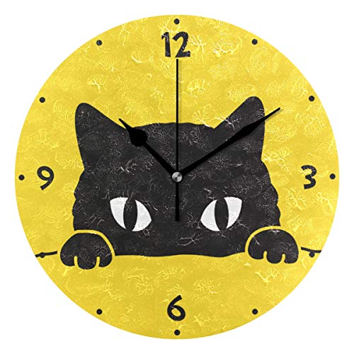 Chovy 掛け時計 置き時計 北欧 おしゃれ かわいい サイレント 連続秒針 壁掛け時計 インテリア 黒猫 猫柄 ネコ