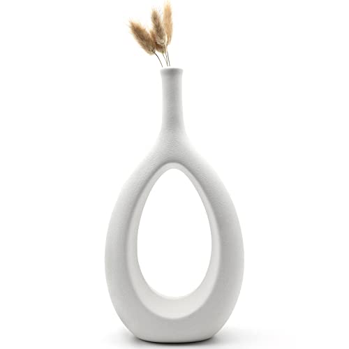 陶磁器 ホワイト 花瓶 楕円 かびん マットライト リビングルーム 部屋飾り 31センチ