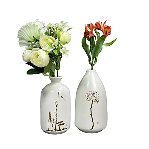 素朴な家、コーヒーテーブルの装飾のための2つの農家のキッチン装飾花瓶の白いセラミック花瓶小さな花瓶セ