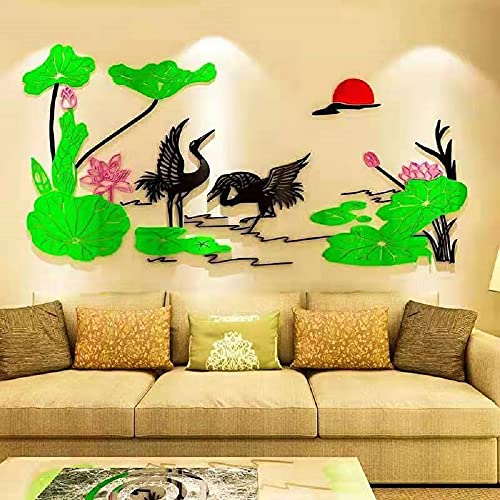 YUJIA ウォールステッカー 鶴 ハスの花 アクリル シール 3D効果 おしゃれ 壁紙 diy シンプル テレビ背景 壁装飾