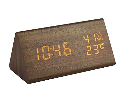HY-MS 置き時計 置時計 目覚まし時計 LEDデジタル時計 木目調 おしゃれ 時計 カレンダー 日付 湿度 温度表 アラ