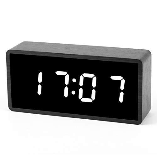 YUUSEI 目覚まし時計 木目調 スヌーズ/カレンダー おしゃれ 温度計 USB給電式 輝度/音量調整可能 LEDデジタル