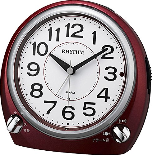 RHYTHM(リズム時計) 大きな文字盤と《ベル・電子音切替》ボリューム付 連続秒針目覚し デュアルサウンドR641 赤