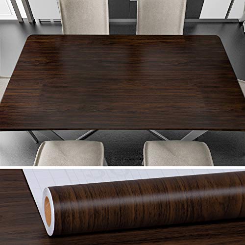 VEELIKE 壁紙シール 木目調 クルミ壁紙 ダークブラウン ツヤ消し ウォールステッカー 40cmx1800cm 剥がせるシール