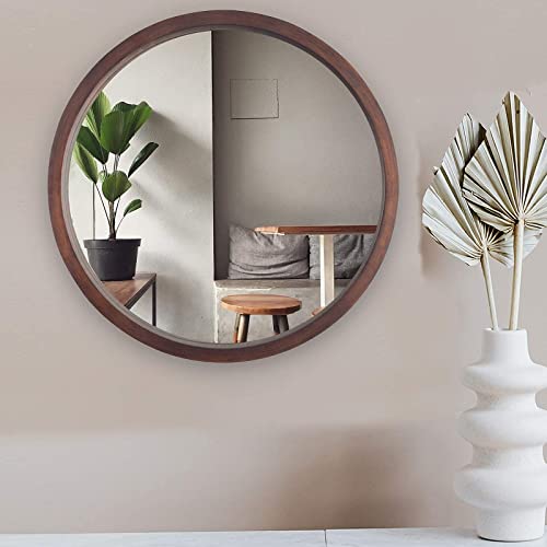 Huimei2Y 鏡 壁掛け鏡 壁掛けミラー 天然木フレーム 丸型ミラー 丸い姿見 ウォールミラー インテリア 洗面 化粧