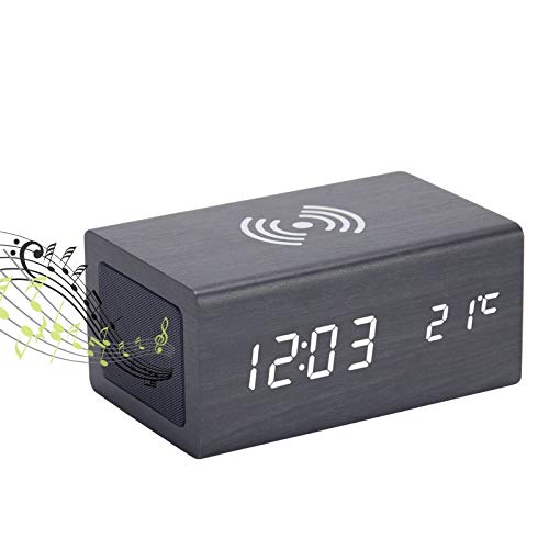 目覚まし時計 おしゃれ 置き時計 スピーカー bluetooth5.0 ワイヤレス充電 温度計 多機能 デジタル インテリア 時