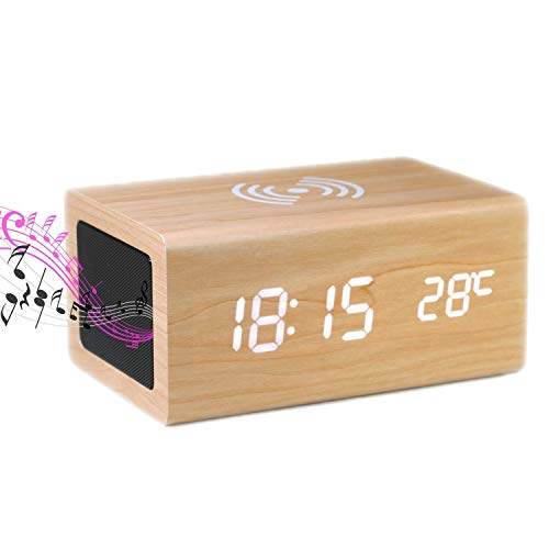 めざまし時計 おしゃれ 置時計 スピーカー付き 温度計 携帯 スマホ ワイヤレス充電 1台4役 デジタル時計 木