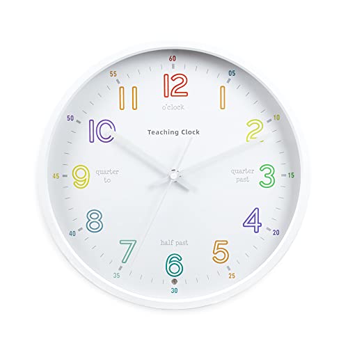 12インチのカチカチ音をたてない知的教育非カチカチサイレントルミナス キッズが時間を教えて学習壁時計電