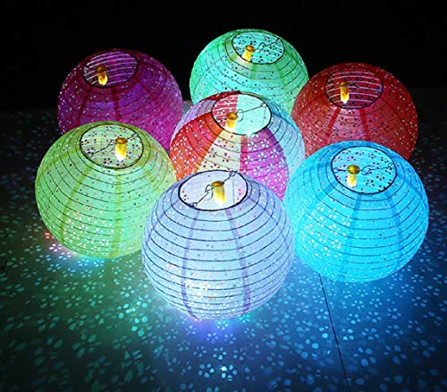カラフル 紙提灯 5個セット 透かし彫り 和紙提灯 無地 ランプシェード丸型 お正月 初詣 花火大会 お盆 お祭り