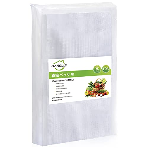 真空パック 袋 15X25cm-100枚 Hanolly PA+PE素材 エンボス加工 真空パック機専用抗菌袋 鮮度長持ち 食品保存 低温調