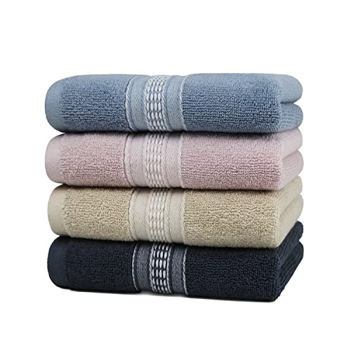 フェイスタオル 綿100% タオル 吸水 速乾 耐久性 やわらか 薄手 使いやすい 業務用 家庭用 (4枚セット, 約74X34