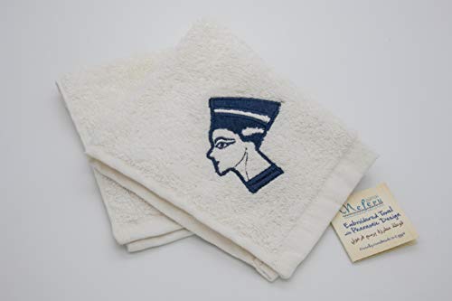 エジプトコットンハンドタオル ファラオ刺繍 ネフェルティティブルー