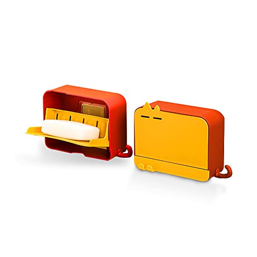 石鹸ケース ソープケース ふた付き 水切り 石鹸入れ 防水 レッド 目を細