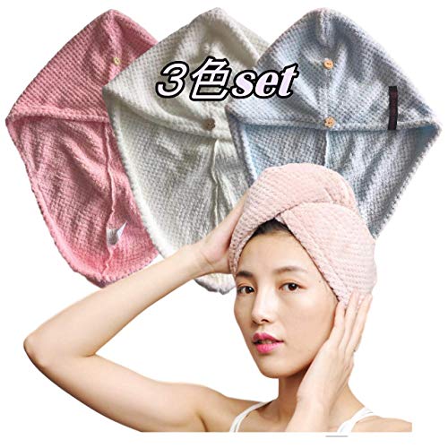 exitora ヘアキャップ タオルキャップ ヘアタオル ヘアドライタオル 吸水 速乾 スイミング (白 青 ピンク) 3セッ