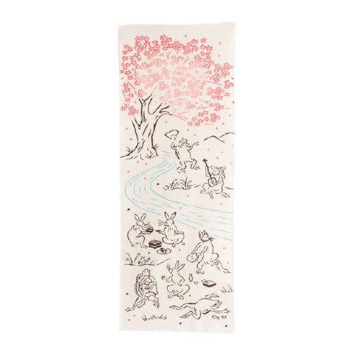 かまわぬ 注染 手ぬぐい お花見の宴 鳥獣戯画 日本製 サイズ:33cm×90cm 綿100% 総理 春柄 (手拭い お花見の宴)