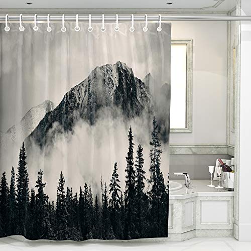 シャワーカーテン 耐久性のある生地 浴室カーテン 無臭 防水 水洗える 間仕切り (山)