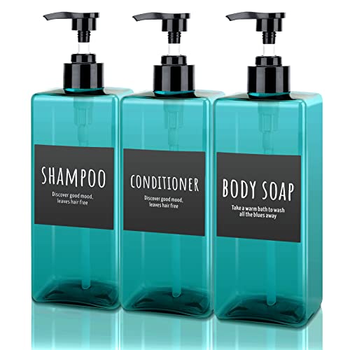 シャンプーボトル ディスペンサー segbeauty 3本セット 詰め替えボトル 容器 おしゃれ 浴室 洗面所(水色,500ml 方