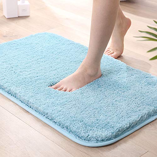 INKARO バスマット お風呂マット 足ふきマット 吸水 速乾 抗菌 滑り止め 丸洗い 浴室 玄関 (ブルー, 50x80cm)