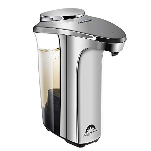 Cheftick 自動ソープディスペンサー シルバーメッキ 自動センサー 電池式 500ml大容量 赤外線センサ 漏れ防止 5段