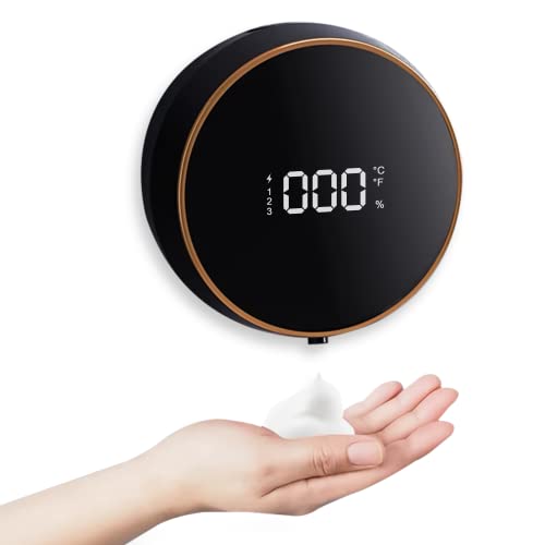 ソープディスペンサー KAWEINA 泡 自動 3段階排出量 2000mAh充電式 300ml容量 室温と電量表示 壁掛け 黒 W1-Black