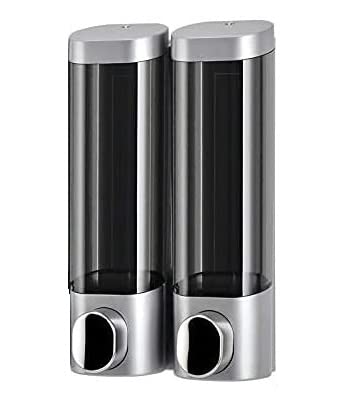 PREMM マグネット で簡単取り付け 壁掛け シャンプーディスペンサー (ダブル 300ml x 2, シルバー)