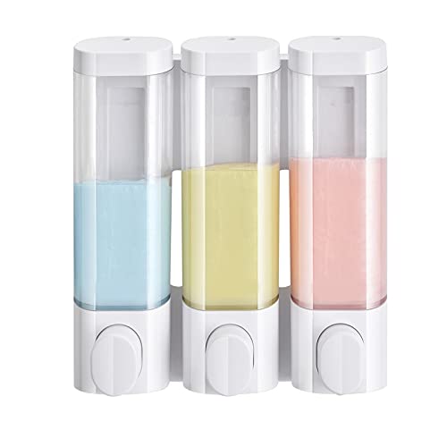 PREMM マグネット で簡単取り付け 壁掛け シャンプーディスペンサー (トリプル 300ml x 3, ホワイト)