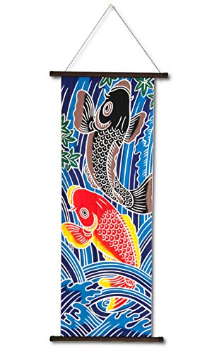 手ぬぐい タペストリー 壁飾り 天然木棒セット 日本製 伝統 職人 鯉の滝登り 登龍門