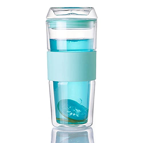 Carrock タンブラー ダブルウォール グラス 二重構造 真空断熱 直飲み 耐熱 カップ 400ML 1個入(ブルー, 400ML)