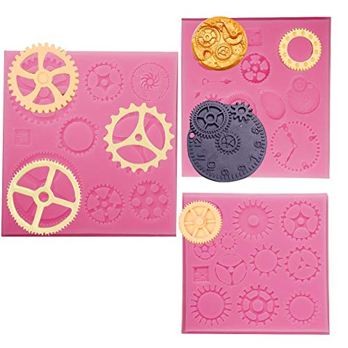SUNNYCLUE 3個スチームパンクギア形状シリコン金型正方形時計時計ホイール歯車歯車フォンダン金型シリコーン