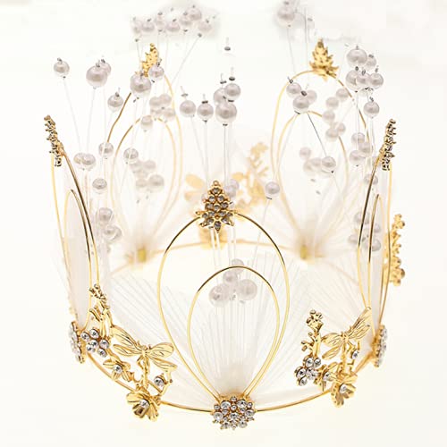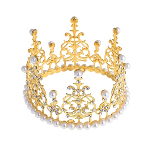 YOVEKAT 女性の女の子のレトロな男は、誕生日の結婚式アクセサリーのための真珠の王冠の花嫁ティアラケーキ