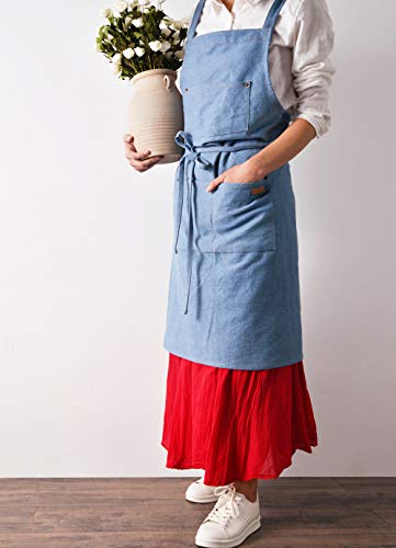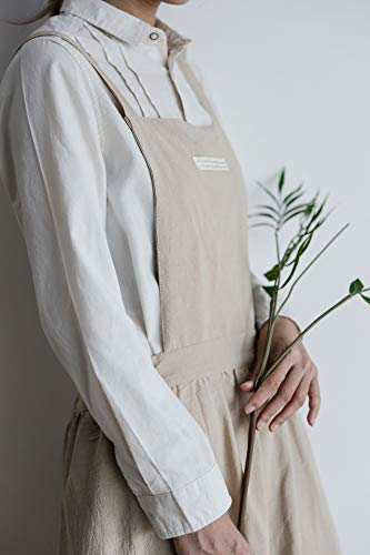 Ansimple ワンピース エプロン おしゃれ 無地 リネン 薄地 カフェ屋 花屋 キッチン ガーデニング ベーキング 保