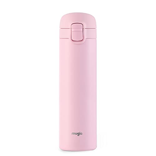 mugic ロック付き 水筒 300ml ステンレス ボトル ワンタッチ 保冷 保温 直飲み 軽量 真空断熱構造 無地 ピンク