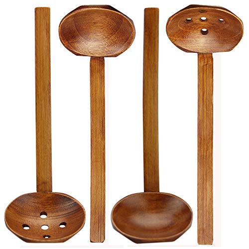 YFWOOD スプーン お玉 竹木製 4本 おたま+穴あきおたま 2セット 22cm ロング柄 軽量 ラーメンスプーン 漆塗り レン