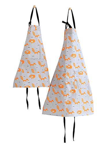 SANIQUEEN.G エプロン 親子ペア お揃い セット ペアルック 家庭 学校用 料理実習 (キツネ グレー)