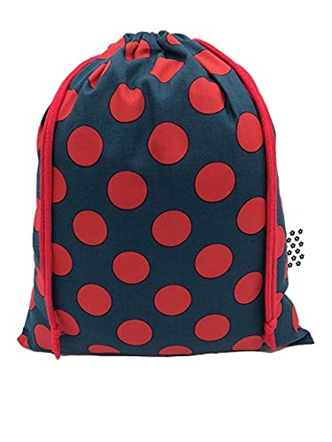 布くろ屋 ハンドメイド巾着袋 ビッグドット (M, ビッグドットブルーグリーン×レッド)
