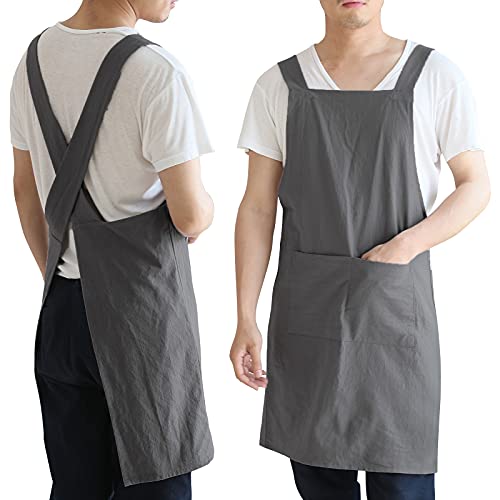 Ninonly エプロン 家庭用 かぶるだけ おゃれい シンプル H型 肩掛け コットン 着脱カンタン ポケット付き 男女